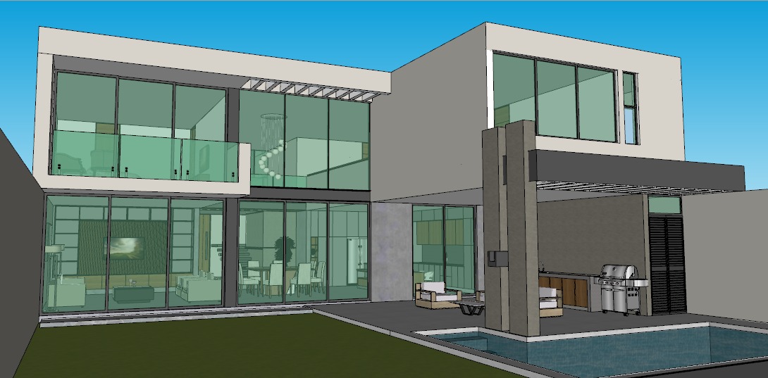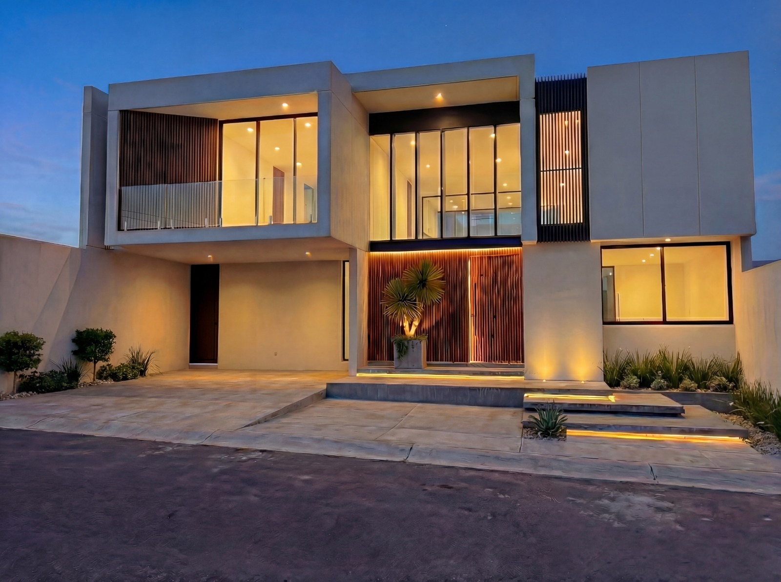 Casa habitación de 2 niveles, el primero consta de cochera tres autos, estudio con baño completo, sala, comedor, cocina integral con barra desayunadora, patio de servicio techado, área de jardín posterior para terraza, cuarto de servicio con baño completo, planta alta distribuidor a 3 recamaras, todas con baño vestidor, sala de estar, escalera con pasamanos de cristal de 9mm templado, aluminio residencial en puertas y ventanas, excelentes terminados, pintura vinílica acrílica 100%, accesorios marca Evans, equipamiento de cocina marca Mabe, porcelanato rectangular.