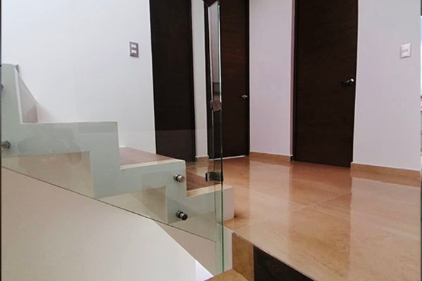 Segundo nivel: distribuidor a 3 recamaras, la principal baño vestidor, 2 restantes con closet de piso al techo, ambas comparten baño completo independiente. Escalera con pasamanos de cristal de 9mm templado, aluminio residencial en puertas y ventanas, excelentes terminados, pintura vinílica acrílica 100%, accesorios marca Evans, equipamiento de cocina marca Mabe, porcelanato rectangular.